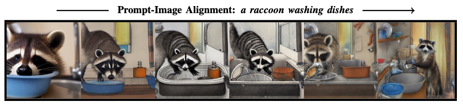 从左往右随着 RL 训练的进行,图像生成结果与文本越来越接近,同时风格也变得越来越一致。